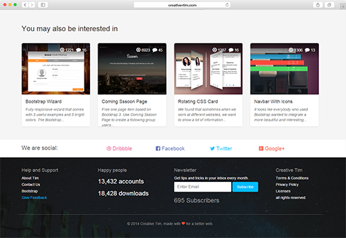 Be amazed by the best looking bootstrap landing page on the web! Your new app deserves an amazing page to show all of its features. Clear visual, light colours and beautifully aligned elements - they all try to make the users aware of your great app features!